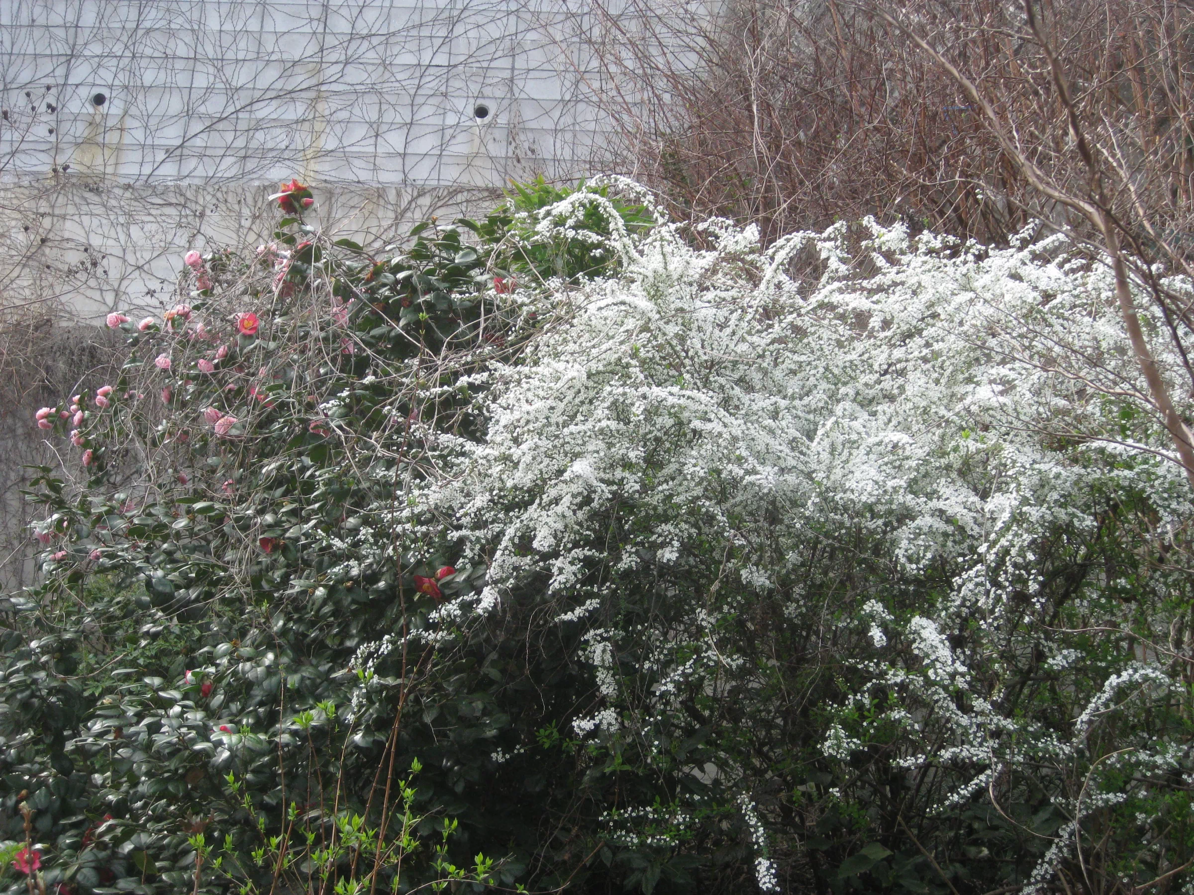 雪柳と2種の椿
