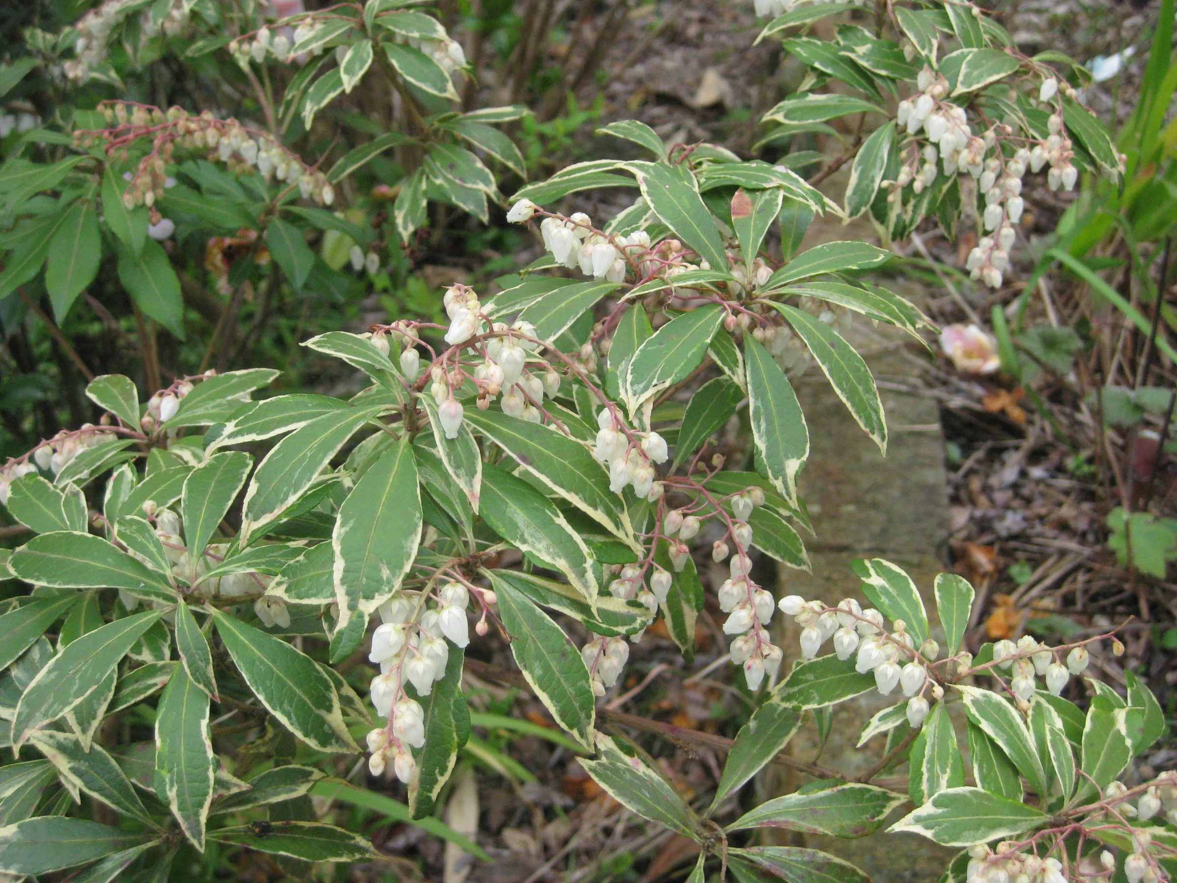 その隣では、斑入り葉の馬酔木が