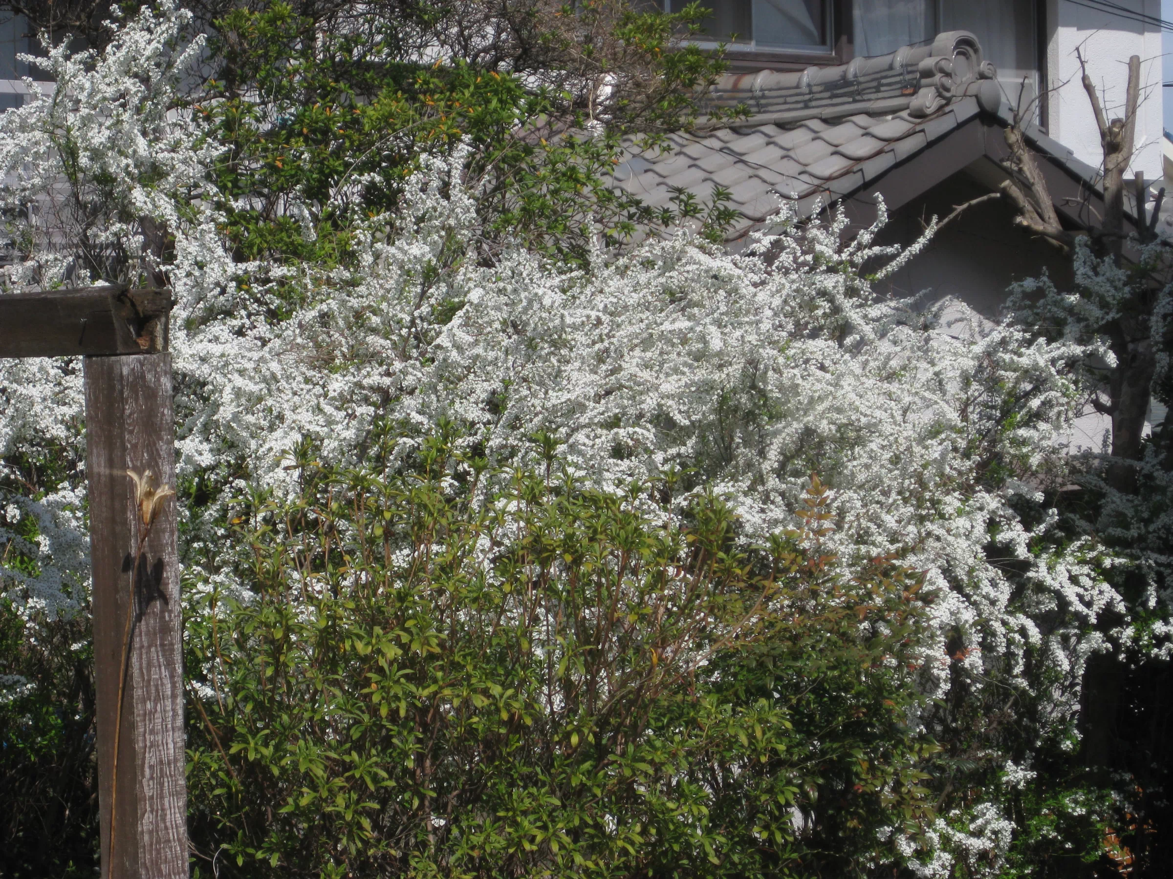 雪柳のトンネル(玄関から門まで)